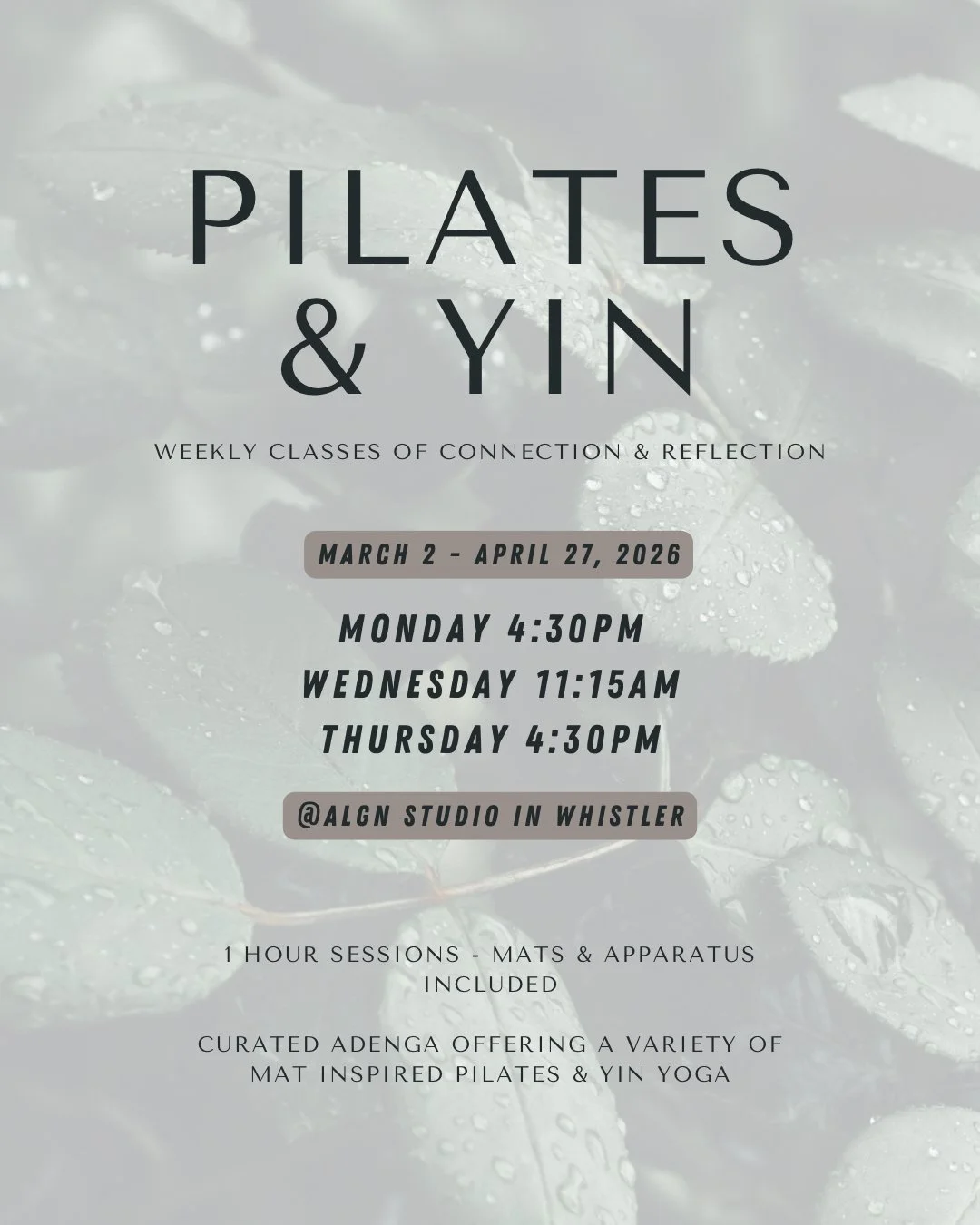 All in studio group classes are currently held at ALGN Studio 114-4293 Mountain Square, near Lululemon in Whistler, BC.